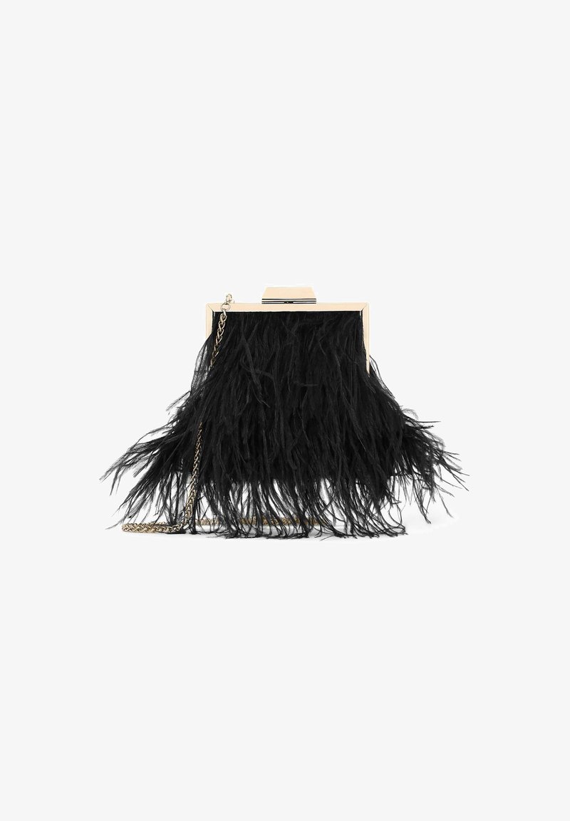 Pochette preta com design clean e acabamento elegante da marca Kazar. Confeccionada em material sintético premium, com textura lisa e fecho metálico dourado. Possui alça de ombro em corrente removível e compartimento interno forrado com divisória prática. Dimensões aproximadas: 13 cm (altura) x 23 cm (largura) x 4 cm (profundidade). Ideal para eventos, reuniões ou saídas noturnas.